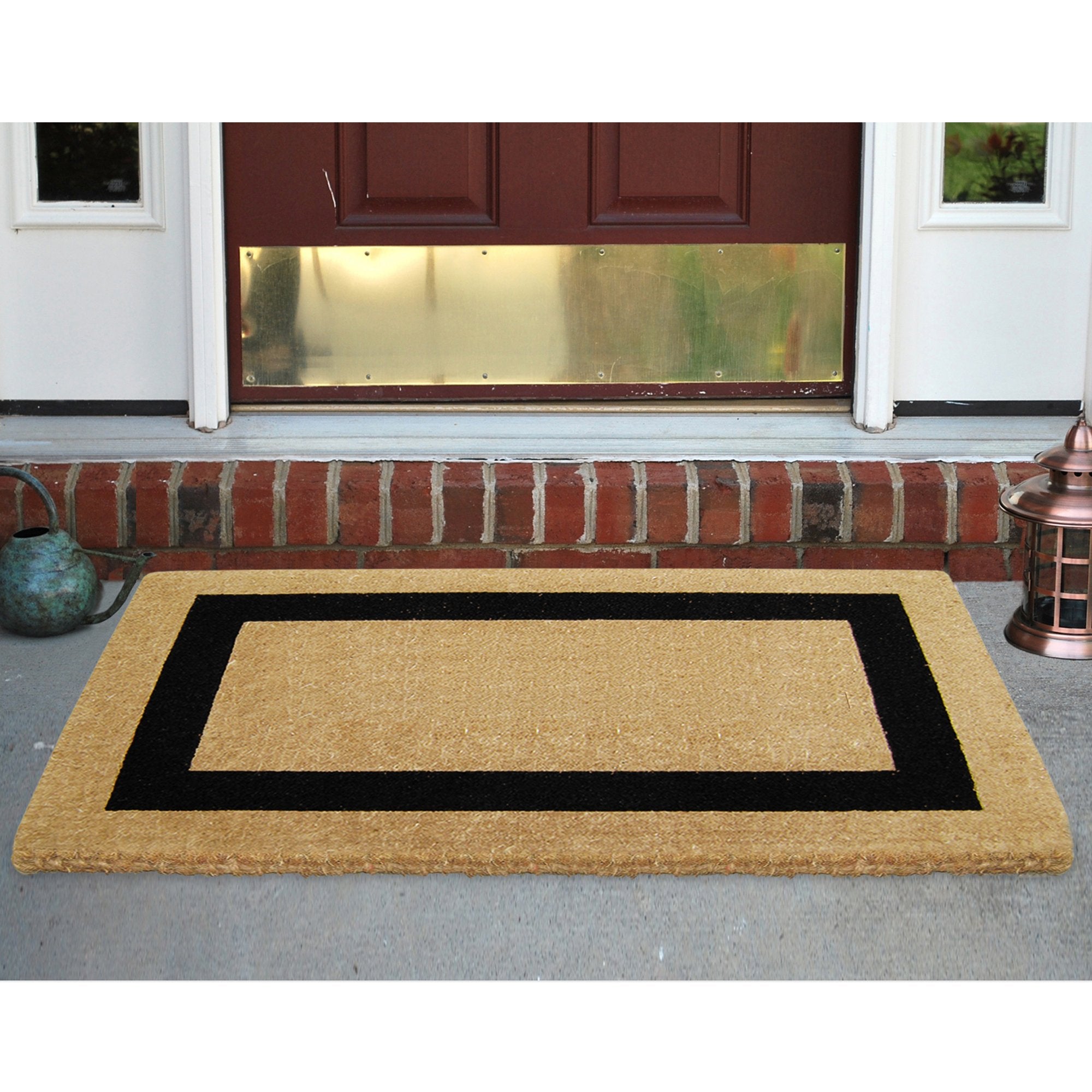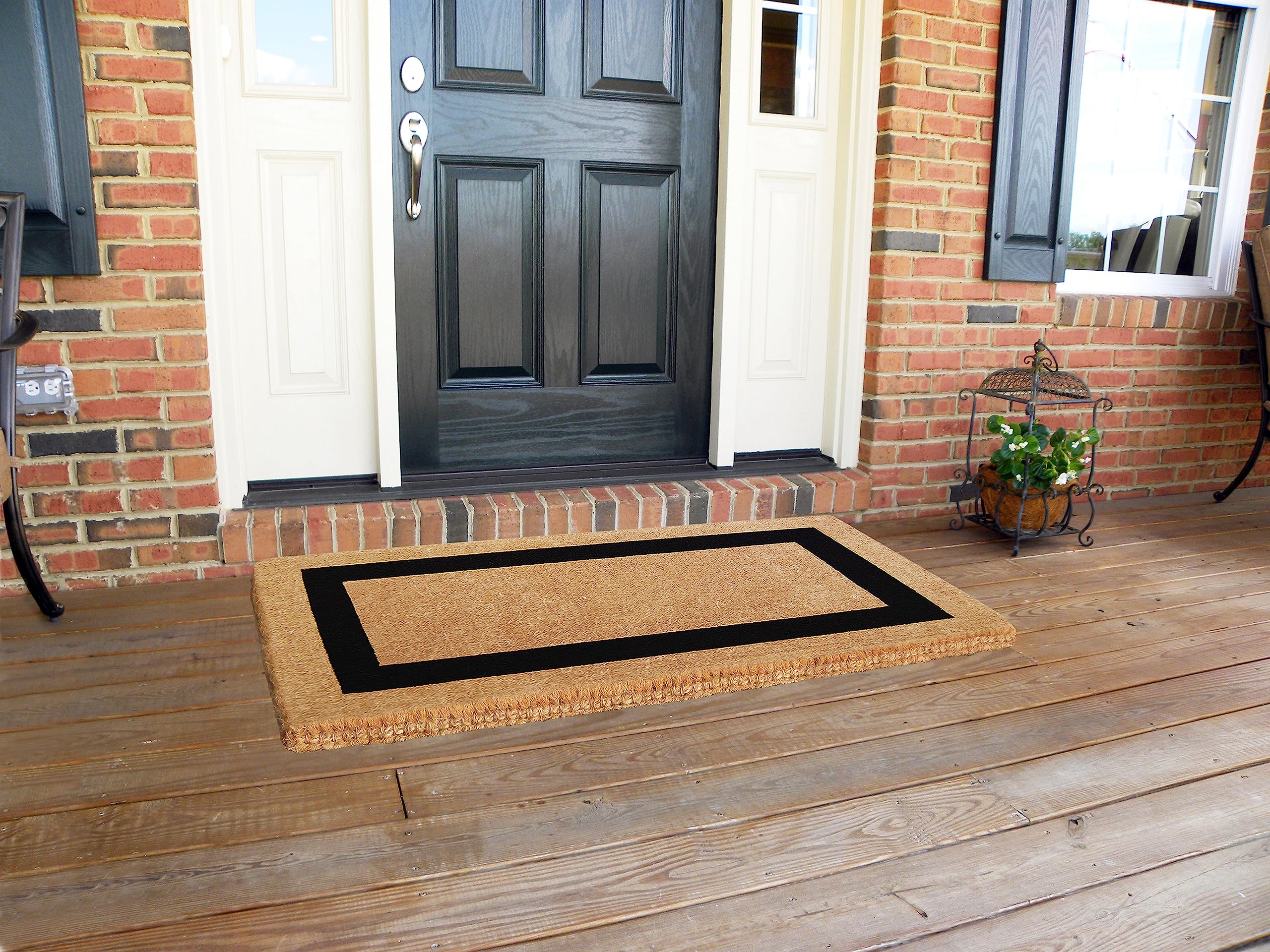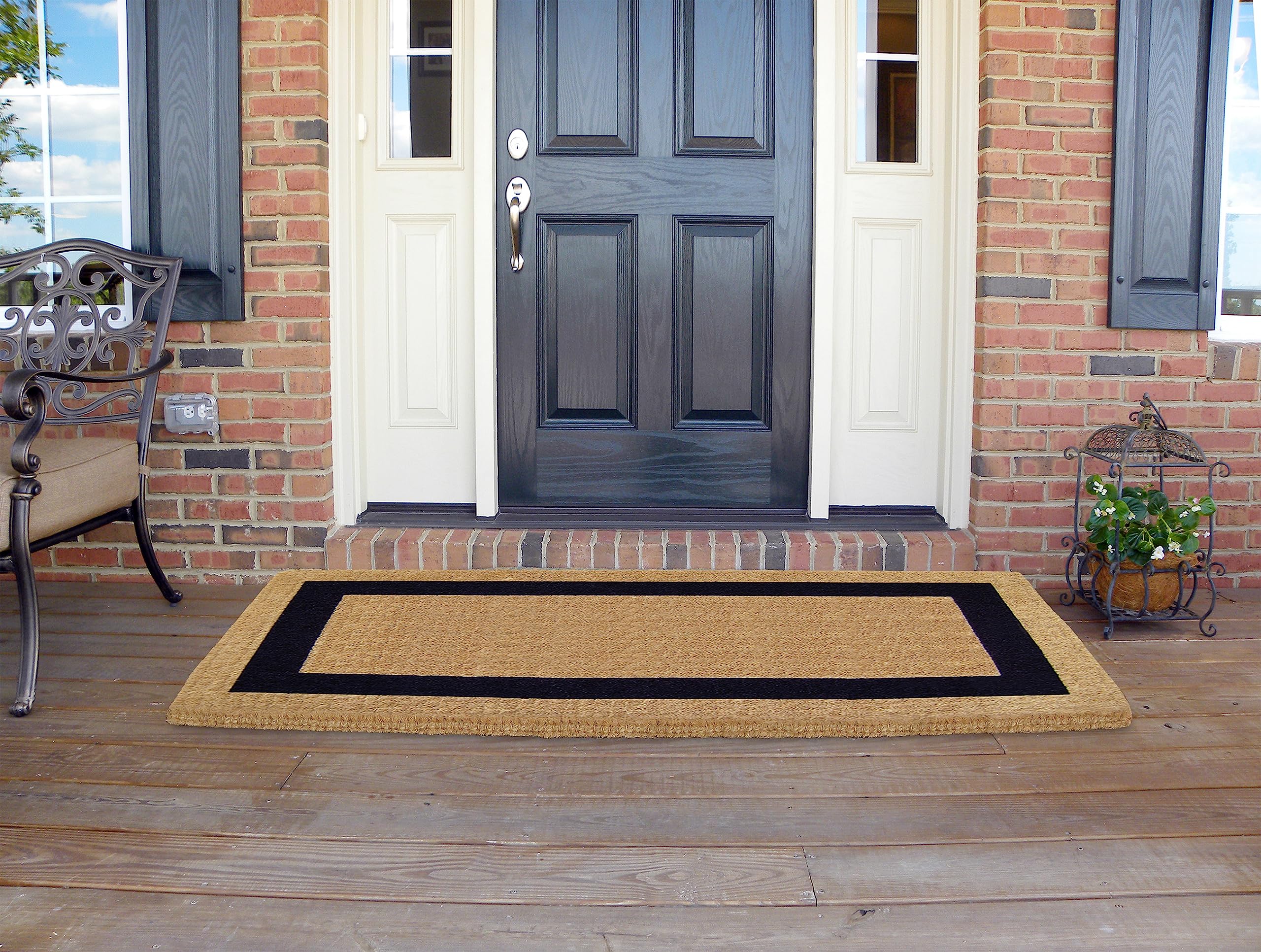 Luxury Thick 2” Coco Coir Doormat Outdoor Door Mat with Single Picture Frame Border in Multiple Sizes and Colors – Doormats for Front Door Outdoor Mat (Black, 22" x 36")